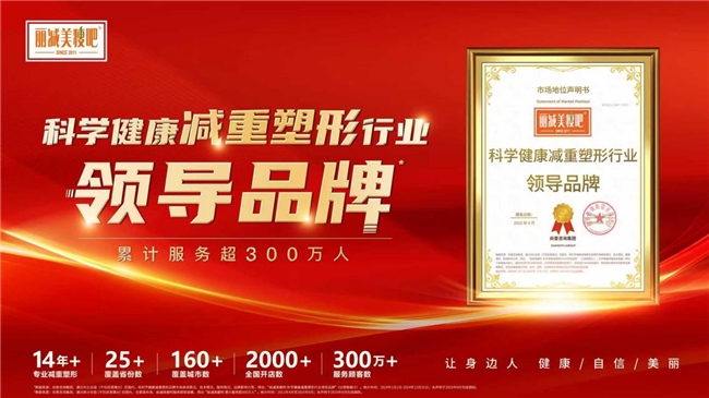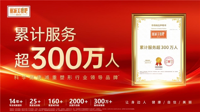| 近日,国内权威咨询机构尚普咨询针对专业减重塑形加盟连锁头部品牌丽减美瘦吧启动专项系统性研究,经严谨调研与数据验证,正式确认其"科学健康减重塑形行业领导品牌"的市场地位,并核定其累计服务顾客规模突破300万人。这一权威认证,不仅印证了丽减美瘦吧在减重塑形赛道的持续领跑实力,更凸显其作为行业标杆的品牌影响力与市场覆盖力。